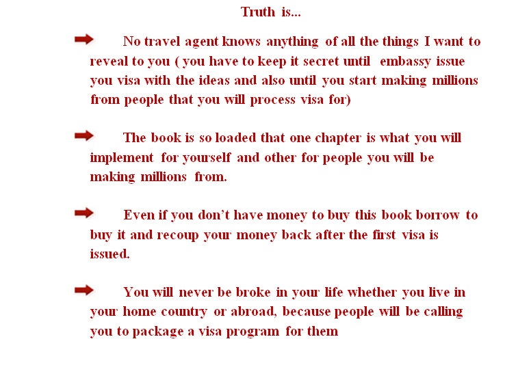 At This Point! I would like to introduce to you the secrets on how to compel Embassies to issue your visa with no agent required.
